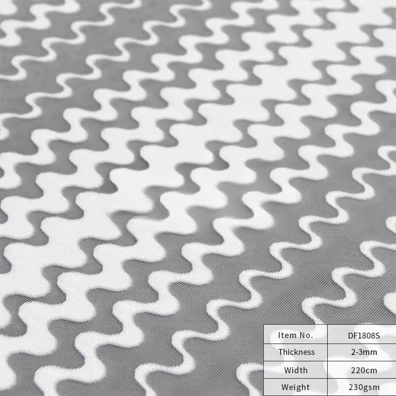Vải lưới Polyester 100% Composite DF1808S được dệt kim trơn, cấu trúc ổn định, bề mặt thoáng khí, mang lại cảm giác nhẹ và dễ chịu khi sử dụng.
